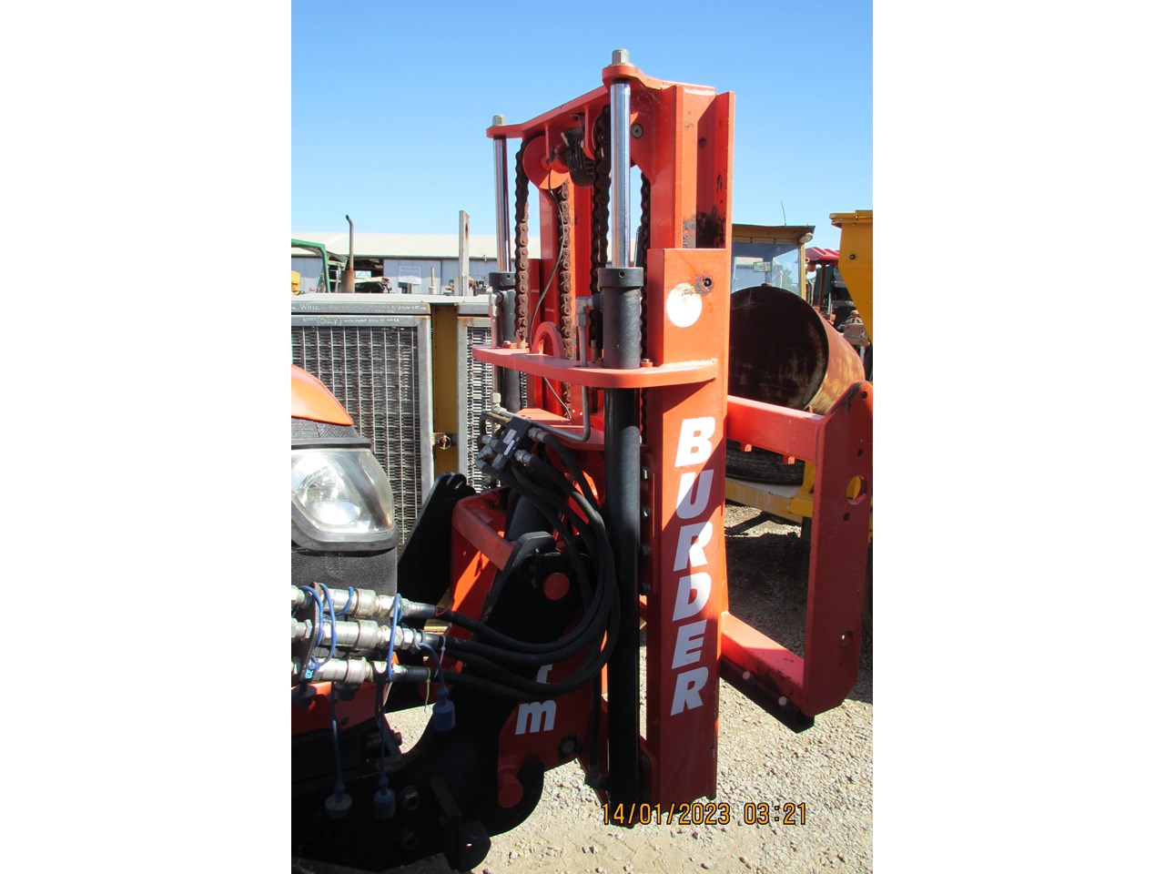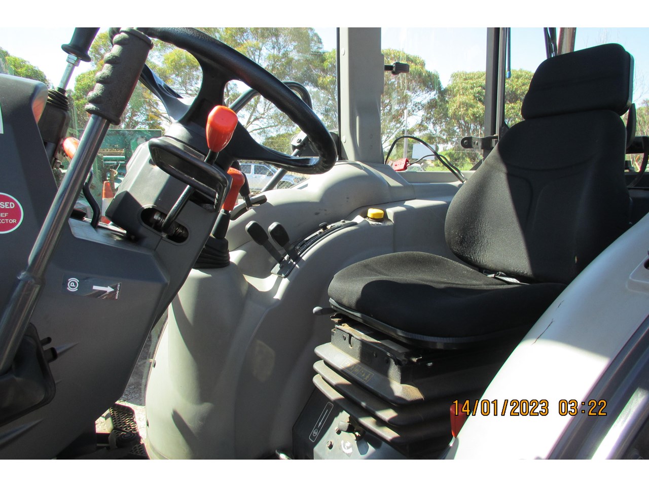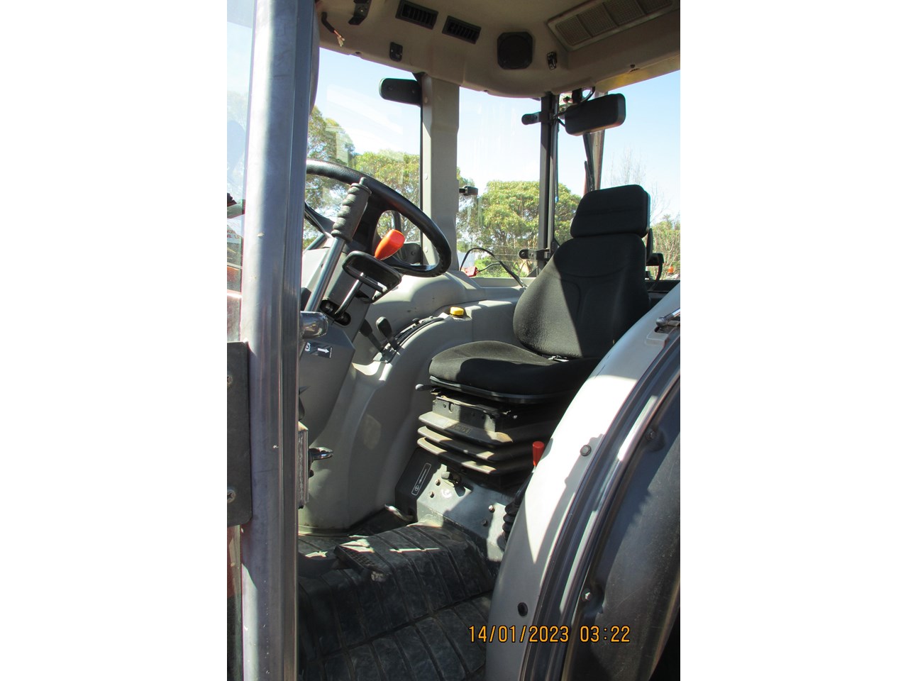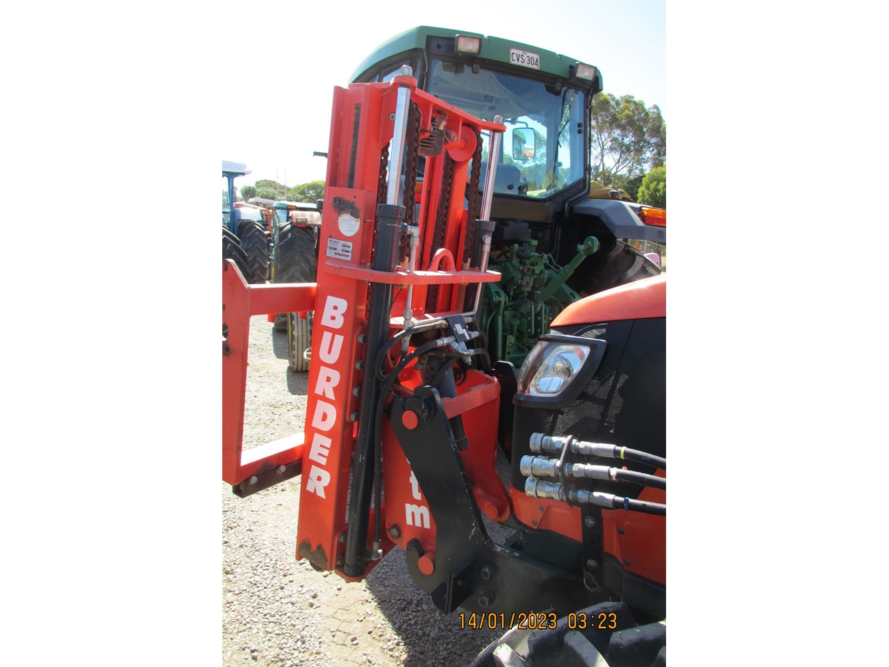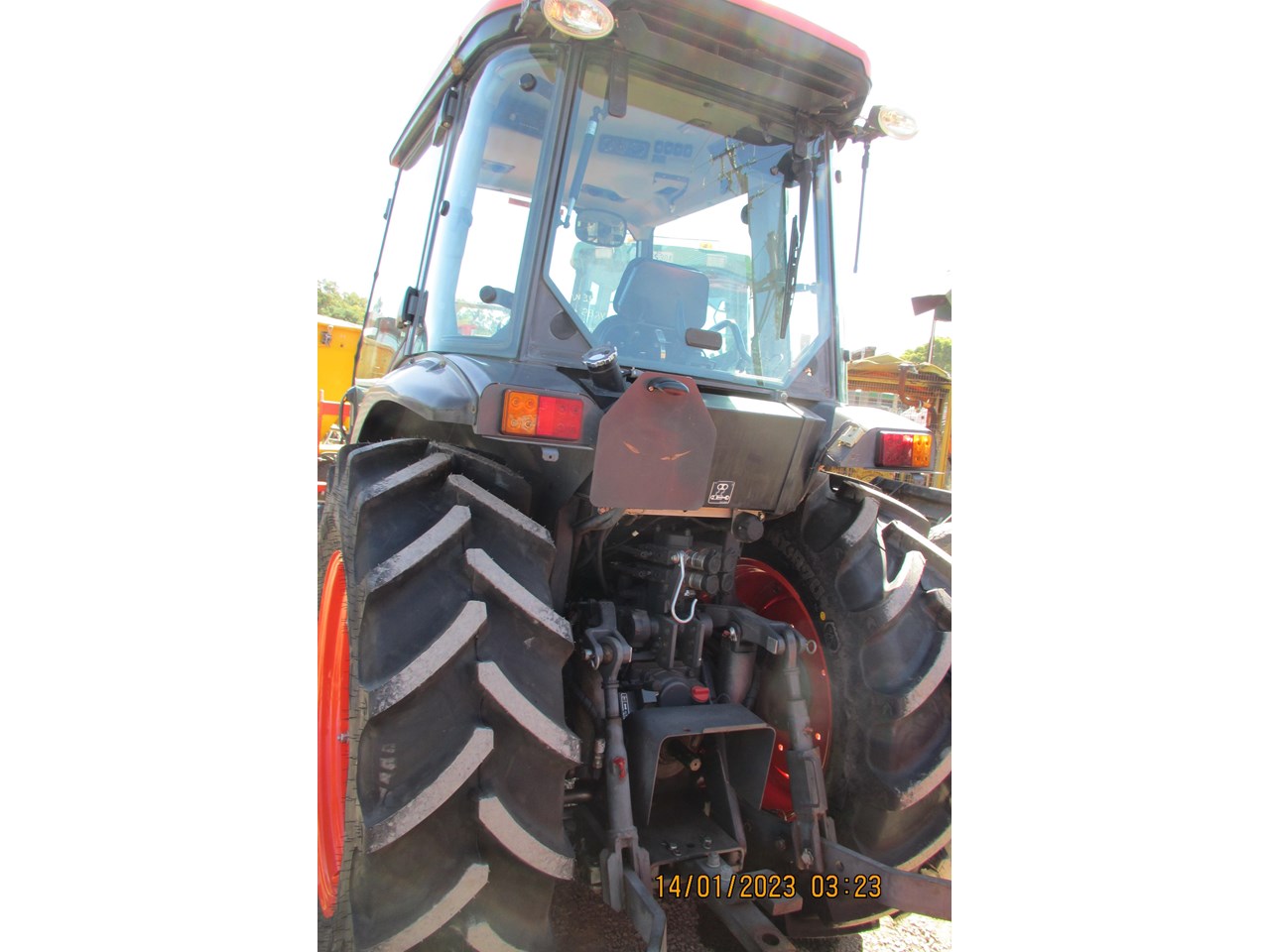 Kubota M8540 Tractor (Narrow), 4 wheel drive, with Front Fork Attachment & Front Tynes, 4 cylinder diesel turbo, extra 4 bank electric hydraulics, 85 horsepower approximately, air conditioning (working), approximately 5,700 hours indicated, engine no: 2DQ1454, serial no: 87908, ROPS