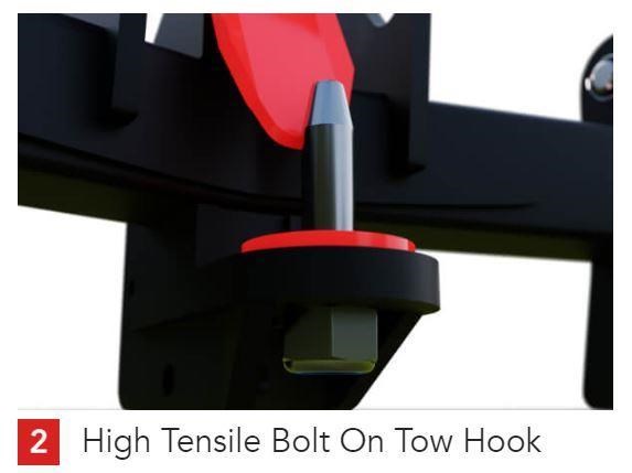 Incredibly robust frame, incorporating the following features to make it as user-friendly as possible. A spring loaded safety flap that auto sets when the towing eye is in position.